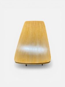 60-luvun sohvapöytä jossa pinnat laitettu. Siisti toisessa reunassa pieni viiluvika. Pöydän pituus 120 cm, leveys 55,5 cm ja korkeus 55cm.