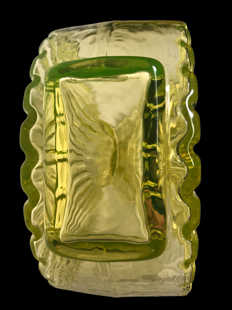 Helena Tynellin Riihimäenlasille suunnittelema keltainen Aurinkopullo, koko 3/4. Pulloja on valmistettu vuosina 1964-1974.