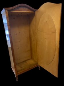 Vanha siisti jugend vaatekaappi. Koivu runkoa, sisällä vaatekoukut. Kaapin korkeus 190 cm, leveys 84 cm ja syvyys 50 cm.