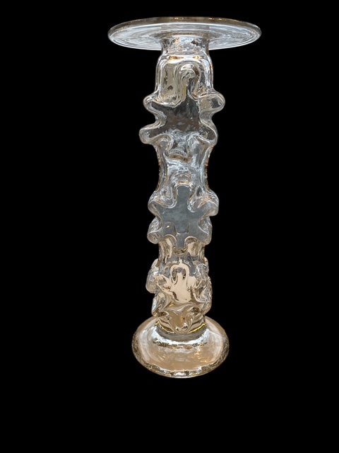 Erkki Tapio Siirosen &0-luvulla Riihimäen lasille suunnittelema kirkas kynttilänjalka Kasper kolmella kuviolla. Signeerattu.