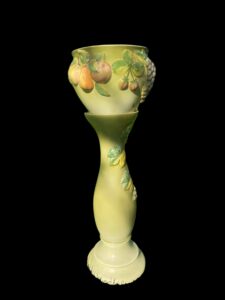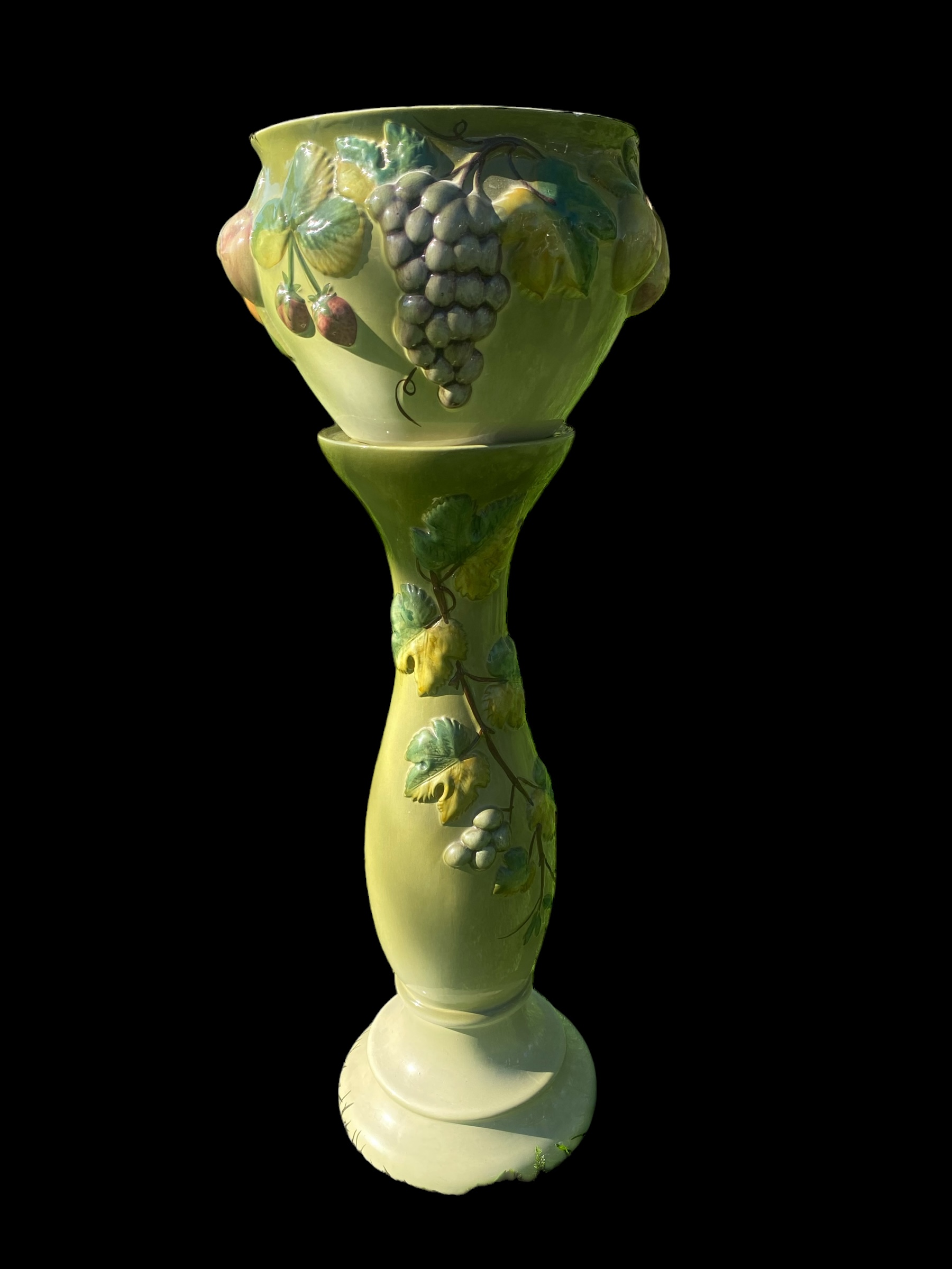Näyttävä posliininen kukkapylväs ja ruukku.  Pylväällä korkeutta kaikkiaan 80 cm.