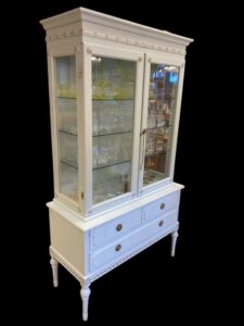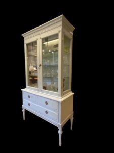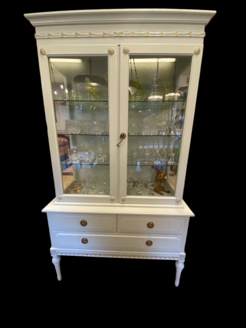 Kustavilaistyylinen lasivitriini, valmistaja Puusepänliike V. Lappalainen, Kukkila.