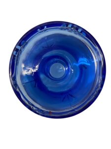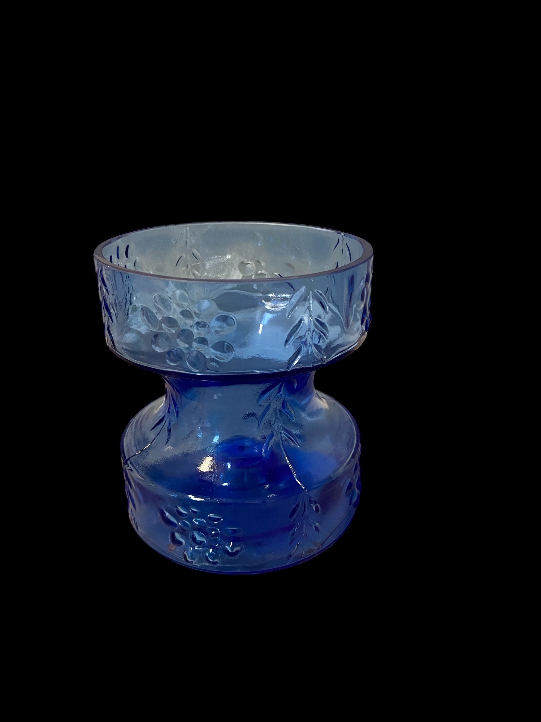 Tamara Aladinin suunnittelema ja Riihimäen lasin valmistama Mesimarja -kääntömaljakko. Toisella puolella on maljakon lisäksi kynttilänjalka mahdollisuus.