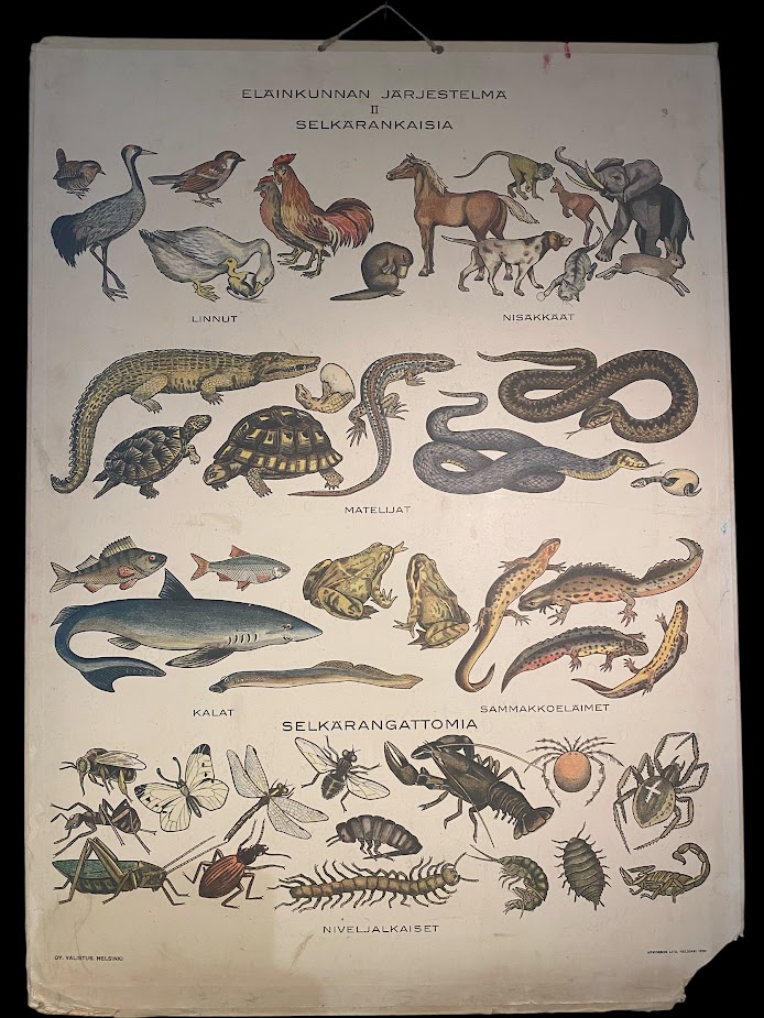 Opetustaulu eläinkunnan järjestelmä 2 selkärankaisia ja selkärangattomia