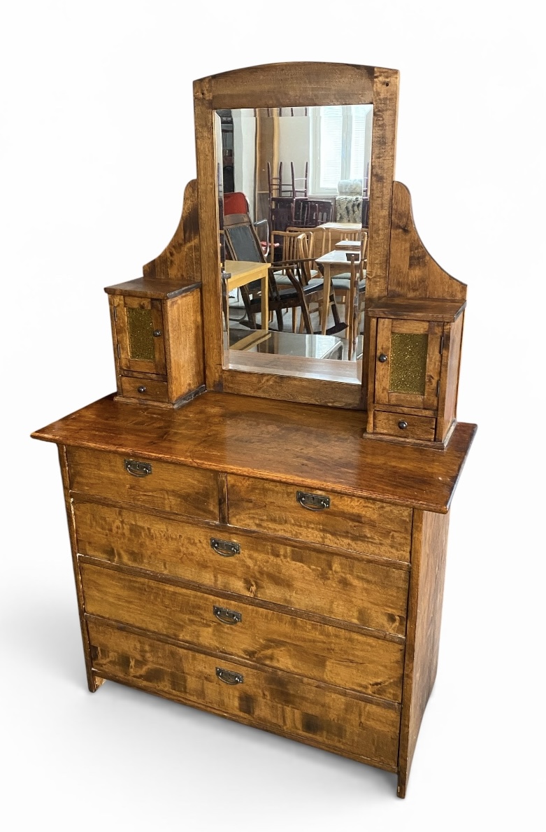 Vanha hyväkuntoinen ”mummolan peililipasto”. Lipastossa alkuperäinen fasettiinhiottu peili.