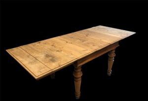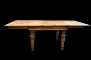 Massiivinen talonpoikaiskeittiön pöytä koivusta. Barokkimaiset sorvatut jalat ja kaunis vanha kulunut koivupinta. Tämän pöydän ympärille mahtuu isompikin suku sillä pöydän lisäosilla pöydän pituudeksi tulee huikeat 215 cm!